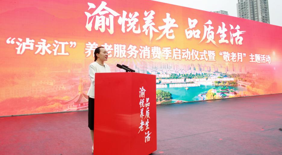 重庆市民政局养老服务处处长周万利致辞。她指出,养老服务是重大民生工程,习近平总书记去年视察重庆时明确指出“中国式现代化,民生为大”,这为重庆养老服务事业发展指明了方向、提供了根本遵循。同时,她肯定“泸永江”三地养老服务合作探索,认为本次活动是激活养老消费市场的重要抓手,希望三地以此为契机,在政策引领、银发市场培育、服务品质提升上发力,满足老年人多样化需求。